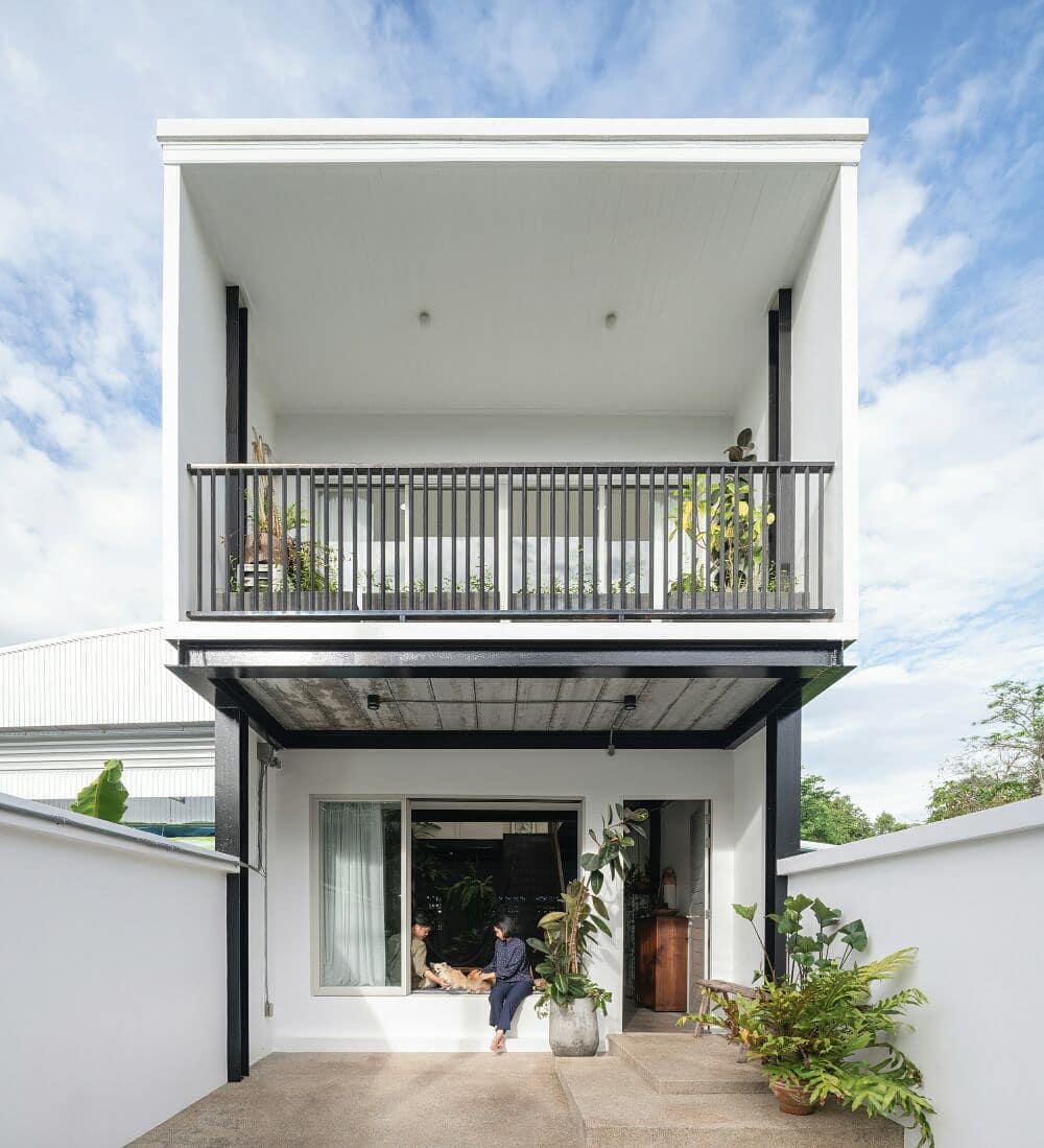 Hunian dengan lahan terbatas dapat memanfaatkan sudut halaman kecil sebagai area hijau. Meskipun sederhana, taman di sudut ini tetap fungsional dan estetis. Kombinasi tanaman hias berdaun lebar dengan ukuran kecil menciptakan kontras menarik pada dinding putih netral. Desain ini tidak mengganggu akses keluar masuk dan tetap menjaga fungsi utama area depan rumah.