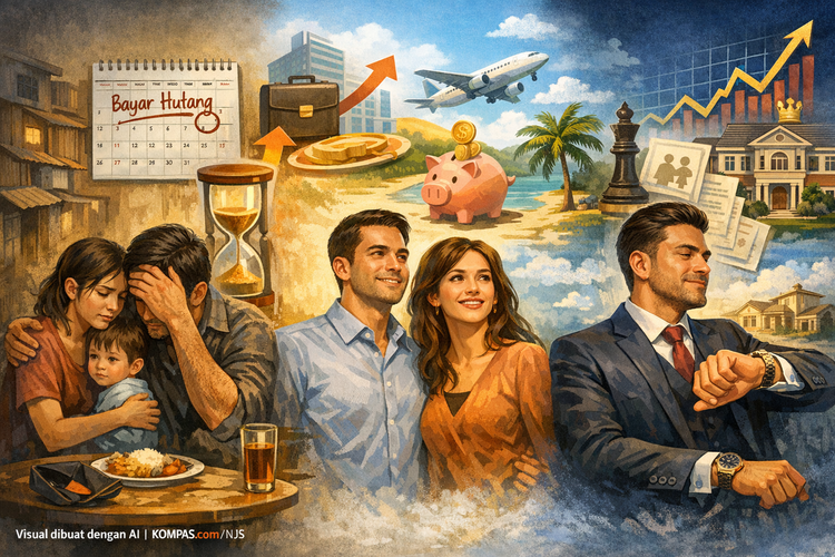 Sementara itu, kelas menengah membentuk lingkaran sosial berbasis kesesuaian dan persaingan status. Dorongan untuk mengikuti standar lingkungan memicu inflasi gaya hidup yang menyerap kenaikan pendapatan dan menjebak dalam siklus bekerja dan membelanjakan uang.