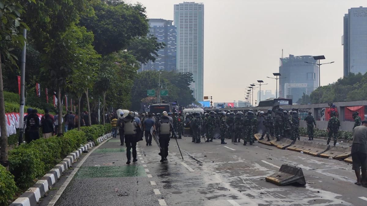 Tak lama kemudian, massa mendatangi blokade kepolisian di dekat persimpangan Kementerian Kehutanan dan jalan mengarah ke Slipi, Jalan Gatot Subroto. Polisi mencoba mengingatkan agar massa tidak melakukan provokasi.