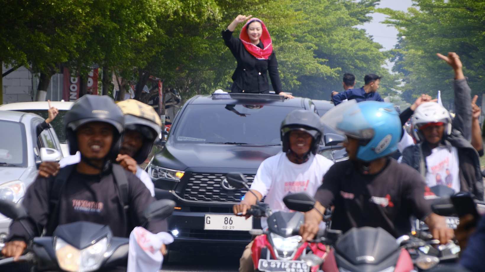 Di sepanjang rute, simpatisan dan pendukung tampak antusias mengawal Mbak Mitha. Tak hanya mereka yang ikut dalam arak-arakan, warga yang berada di pinggir jalan juga terlihat antusias bersemangat, melambaikan tangan dari depan rumah mereka.