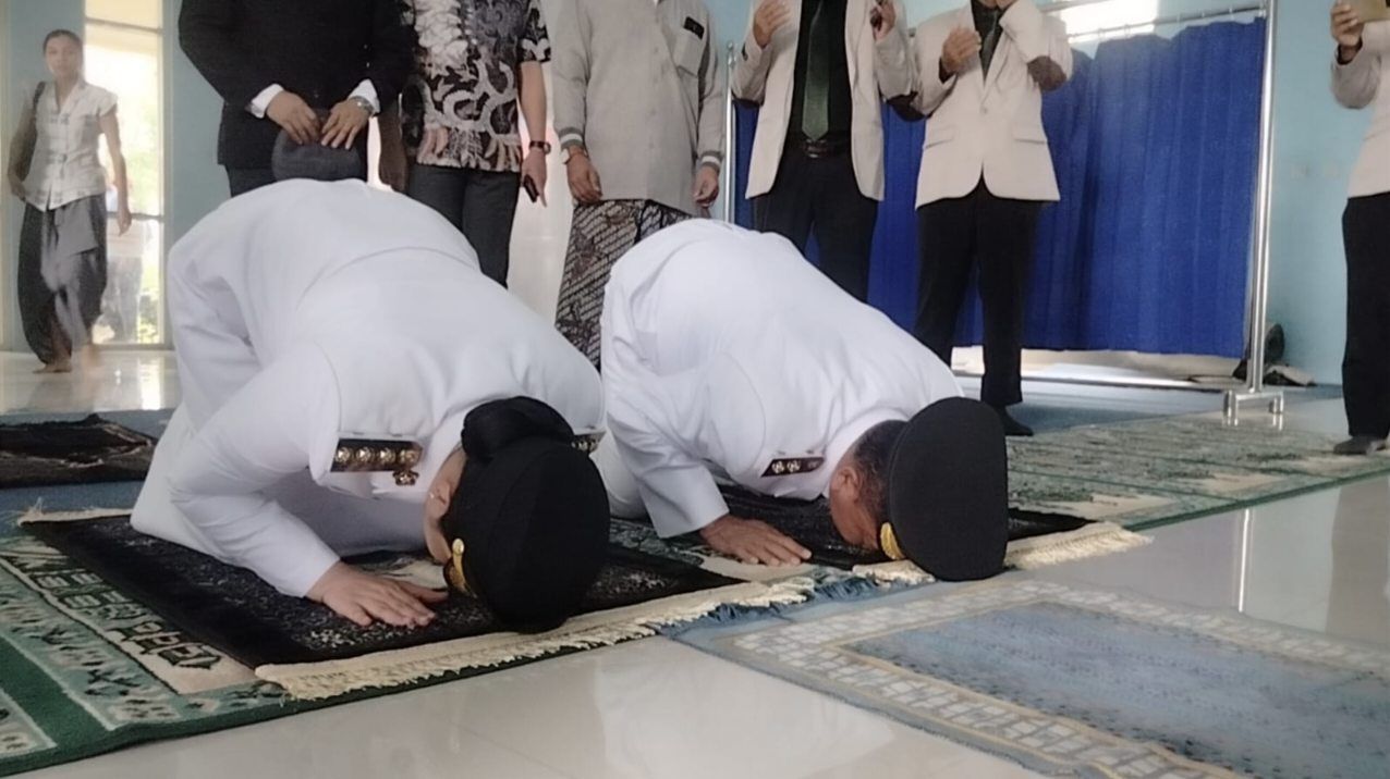BREBES – Usai dilantik di Jakarta oleh Presiden Prabowo Subianto, Bupati dan Wakil Bupati Brebes, Jawa Tengah periode 2025-2030 Paramitha Widya Kusuma dan Wurja (Mitha-Wurja) langsung sujud syukur begitu menginjak Brebes, Kamis 20 Februari 2025.