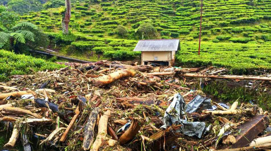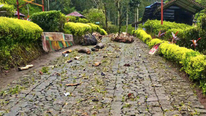 BREBES – Obyek Wisata Kebun Teh Kaligua yang berada di Desa Pandansari Kecamatan Paguyangan Kabupaten Brebes juga tak luput dari amukan lereng gunung Slamet. Gelondongan kayu yang diduga dari penggundulan hutan berceceran di kawasan wisata kebun teh peninggalan Jepang tersebut.