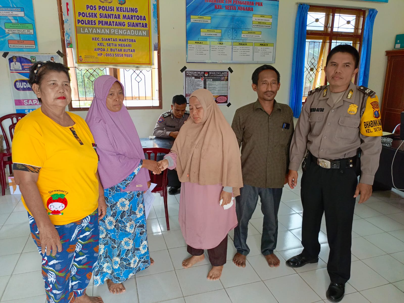 Beberapa aparat kepolisian turut hadir dalam mediasi ini, seperti Ps. Kanit Binmas Aipda Saefudin, Ps. KSPKT II Aipda Hendri, dan Briptu Syawal Rahmaddani. Selain itu, keluarga dari kedua belah pihak juga turut menyaksikan proses penyelesaian ini.