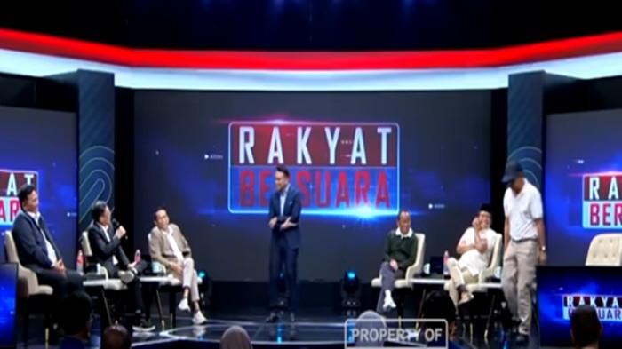 Sementara Rocky Gerung meninggalkan forum “Rakyat Bersuara” saat acara berlangsung.